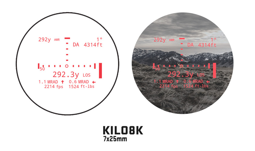 KILO8K har en maximal räckvidd på 7315 meter och inkluderar Applied Ballistics Ultralite och stödjer BDX External (BDX-X) för anslutningar till externa enheter som Kestrel och Garmin. GEN II Lightwave DSP har nya lägen med Extended Range (XR) och Fog läge tillsammans med First, Best och Last target. Avståndsmätaren har en Active Matrix Organic Light Emitting Graphic display som ger avstånd till mål, höjdförhållande, vind och hastighet till målet. Alla avståndsmätare i KILO K-serien använder Low Energy / Long Range Bluetooth 5.x för förbättrad anslutning till BDX-aktiverade kikarsikten. KILO8K levereras med en multicam MOLLE-väska, multicam bärväska, lanyard, stativadapter och en WeatherFlow Bluetooth WindMETER.