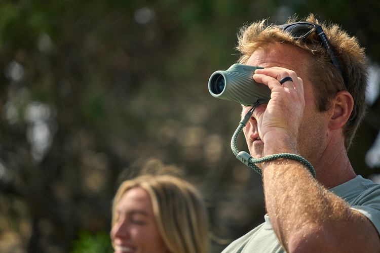 Spiral-texturerat gummihölje omsluter kikaren, vilket gör den greppvänlig, bekväm och stötsäker på samma gång.