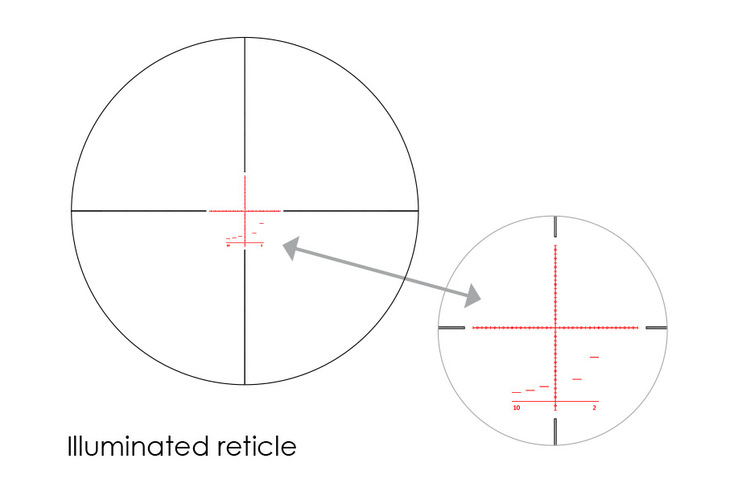 - FFP – Medförstorande riktmedel (första fokusplanet) gör att du kan beräkna träffpunkt och avstånd oberoende av förstoringsgrad
