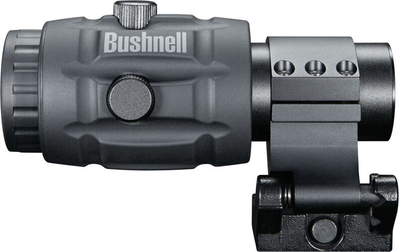 Nothing compares to a red dot scope when it comes to rapid, easy target acquisition. The only thing missing was magnification - but not anymore. Introducing the Bushnell® AR Optics Transition™ 3X Magnifier. It perfectly pairs with AR Optics TRS-25 by Bushnell, but works with any Red Dot. The AR Optics 3X Magnifier mounts behind your optic and it comes with an ambidextrous flip mount. Engage the Transition™ when you need it; flip it out of the way when you don't. It's made with the quality you've come to expect from Bushnell®. The fully multi-coated optics provide optimal light transmission, are waterproof, fogproof and shockproof.