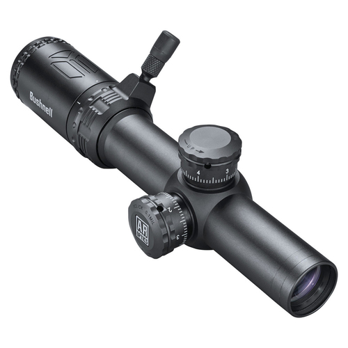 Bushnell AR Optics 1-4x24 FFP passar på allt från jaktvapen till snabba .22or och är extra effektivt om man behöver snabbt korrigera träffläget. Riktmedelet är en upplyst ring med liten punkt i mitten. Då BTR-1 ligger i första fokusplanet är skalan den samma oavsett förstoring. Den inbyggda och utfällbara zoom-vredet är suveränt för att snabbt skifta förstoring.