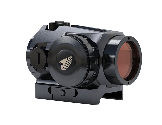 Kompakt rödpunktsikte med liten skarp prick, lång batteritid och NV-lägen.