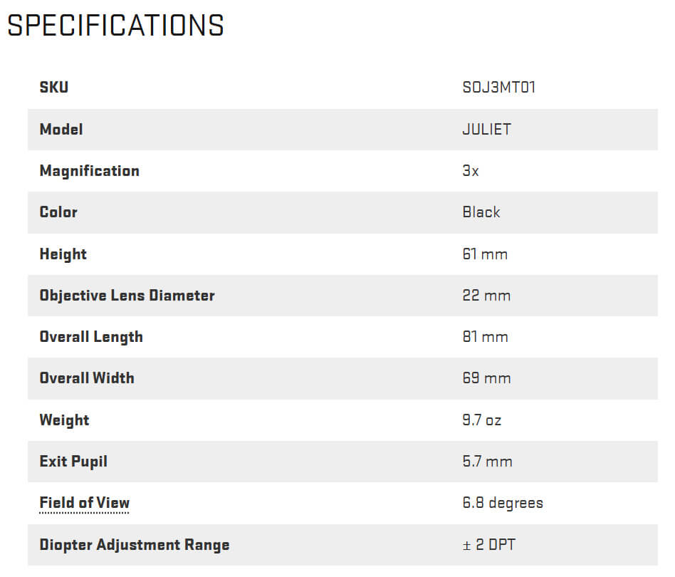 Trots sin kompakta konstruktion har ROMEO8T-AMR en massiv 40MM objektivlins för oöverträffad situationsmedvetenhet, medan de högpresterande beläggningarna och linssystemet levererar anmärkningsvärd prestanda under mörkerseende. ROMEO8T-AMR och JULIET3T-AMR-systemet är konstruerat för att överträffa kraven från elitstyrkor runt om i världen, uppfyller MIL-810-STD-protokollet, är IPX8 vattentät och imtät, och täcks fullständigt av SIG SAUERs Infinite Guarantee™.