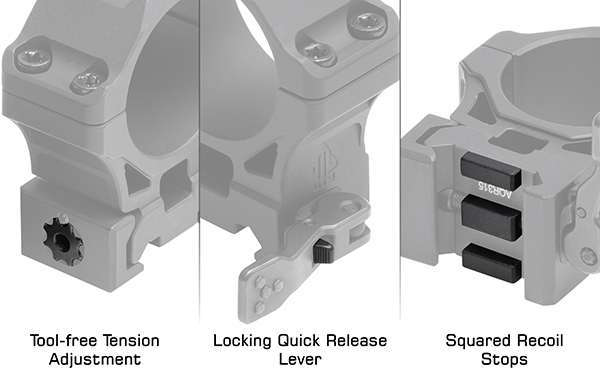 Kikarsiktesfästen från Amerikanska Leapers. Kraftfulla fästen för alla typer av vapen. De flesta fästen finns i både 2-delat utförande och med hel skena. Den hela skenans stora anläggningsyta gör att fästet står emot mycket kraftfulla rekyler.