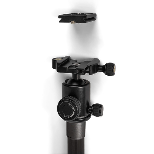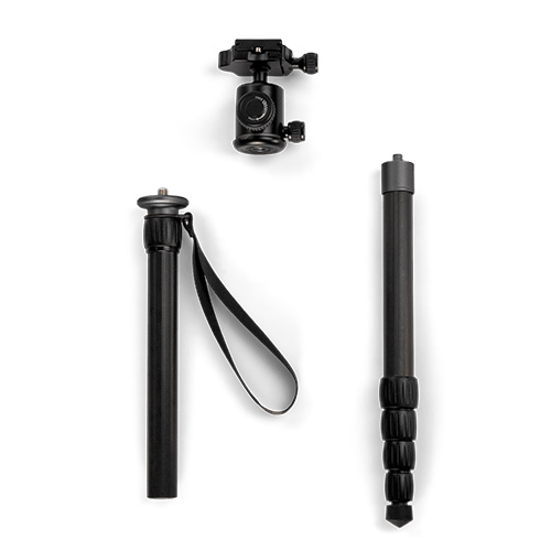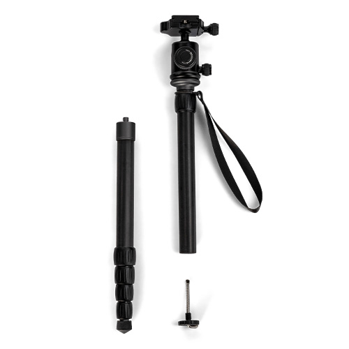 Det högkvalitativa och extremt lätta stativet i full kolfiber är kompakt och mobilt tack vare sina 4 sektioner och ben som kan fällas upp (bärväska ingår) och ändå extremt robust. Ett 3D-kulledshuvud med snabbkoppling är redan monterat. Stativet kan omvandlas till ett enbensstativ på bara några sekunder.