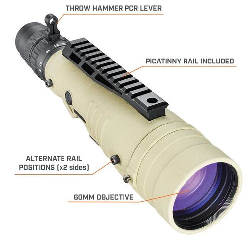 A compact military-grade spotting scope with a first focal plane reticle, ED Prime glass in a rugged package that truly makes it Elite Tactical.