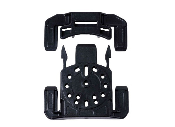 M.B.S. INJECTION-MOULDED SNAP-ON MOLLE PLATFORM. Radar injection moulded polymer M.O.L.L.E compatible snap-on platform. Easly fits and clips on any M.O.L.L.E compatible system such as tactical vests, backpacks or blast belts. Multiple holes pattern allows for holster mounting in different position and angles.