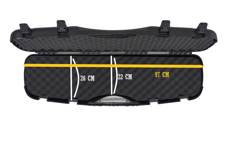 Vapenkoffert från Reximex. Insidan i både övre och nedre delen är inredda med foammaterial för att delar och vapnen skall ligga säkert och stabilt vid transport och förvaring mellan tillfällena då du använder produkterna.