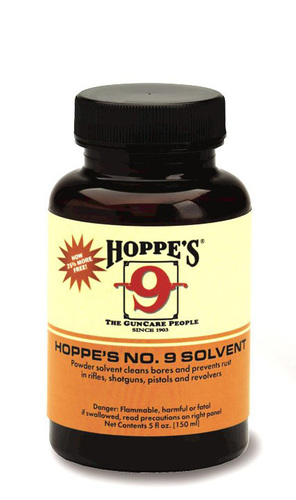 Hoppe's No. 9 Solvent är den klassiska krutlösaren som effektivt löser slagg och krutrester, och till viss del även koppar, bly och rost. Den är enkel att använda och verkar snabbt och djupt. Hoppe's No. 9 lämnar en skinande ren pipa och den berömda doften av ett välvårdat vapen.
