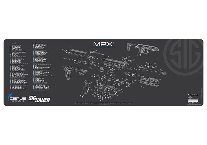 Genom samarbete med Cerus Gear ges denna exakta schematiska matta. Den är lätt, förlåtande och kraftig. Tillverkad för arbete med skjutvapen och har ett halkfritt texturerat gummi som inte glider runt på bänken. Mattan är mycket slitstark och tål oljor och solventer.