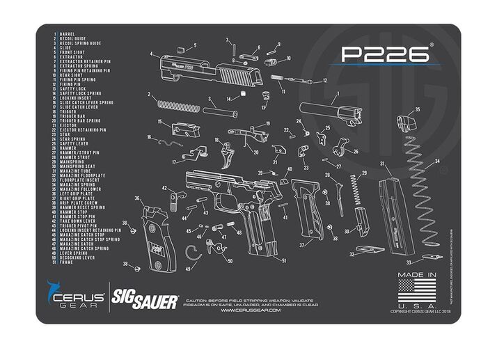 Genom samarbete med Cerus Gear ges denna exakta schematiska matta. Den är lätt, förlåtande och kraftig. Tillverkad för arbete med skjutvapen och har ett halkfritt texturerat gummi som inte glider runt på bänken. Mattan är mycket slitstark och tål oljor och solventer.