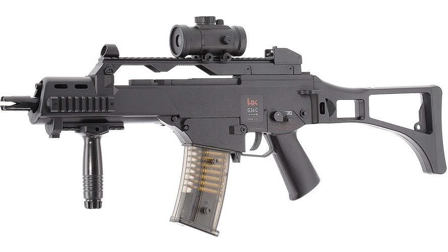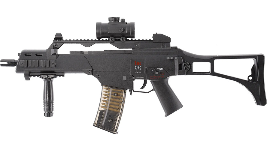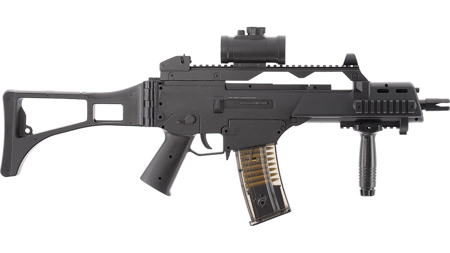 En mycket detaljerad kopia av den legendariska H&K G36C som används av många special styrkor välden runt. Eftersom den är el driven kan du välja mellan att skjuta enkelskott eller automateld. Magasinet rymmer 48st 6mm kulor. G36 C har en utgångshastighet på 70m/s.Rödpunktssikte, vertikalt grepp,batteri, laddare samt pipkompensator ingår.