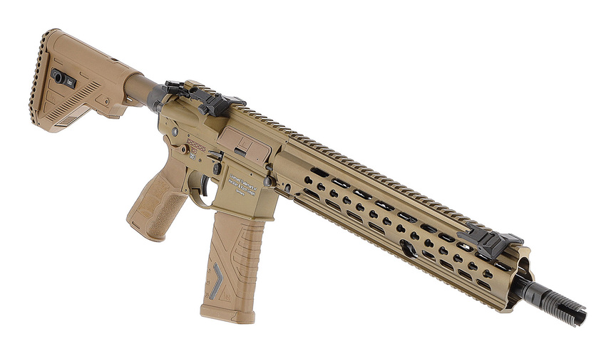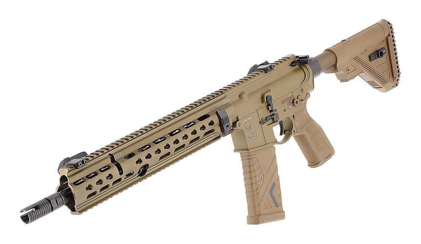 En delad gearbox, en programmerbar elektronisk avtryckare, den justerbara Shoot-up:en och gängan på pipmynningen (M14x1 CCW) lämnar inget övrigt att önska. Magasinet MidCap med 120 skott kan ställas om för att hantera 30 skott. Trogen originalet har den elektriska airsoftversionen ett hopfällbart och justerbart reservsikte med 45° offset.