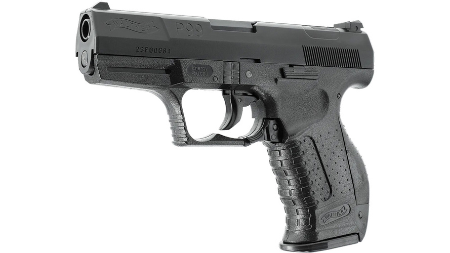 Walthers första och mest framgångsrika polymerpistol som en fjäderdriven airsoft-version (< 0,08 Joule). Med extra bakre grepp (storlek XL) och 100 kulor. Picatinnybas under pipan för t.ex. vapenlampa eller laser.