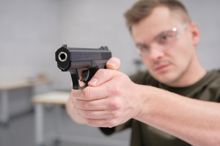 - Autentiskt system med spännarm på greppet, likt den riktiga pistolen