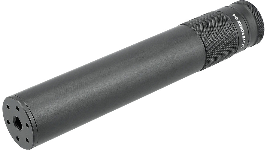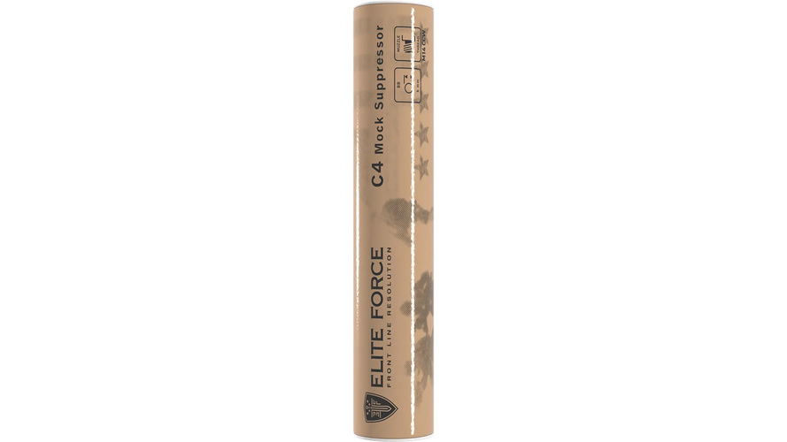 C4 Mock Suppressor från Elite Force ger varje airsoftvapen med en gänga vid mynningen (M14x1 vänster) ett distinkt utseende, utan att påverka ljudnivån. Den är 200 mm lång och tillverkad av högkvalitativt aluminium, vilket gör den lämplig för både pistoler och gevär.