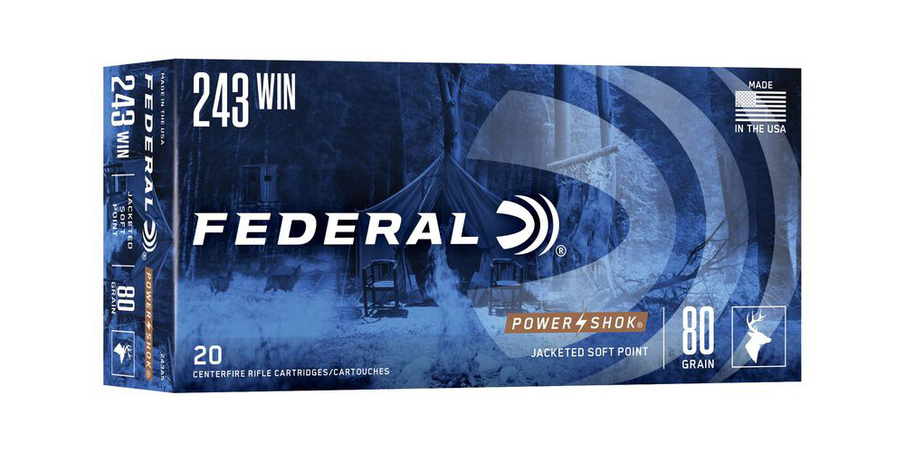 Federal Power Shok Ammo 243 Win Jacketed SP 80gr 20/Box