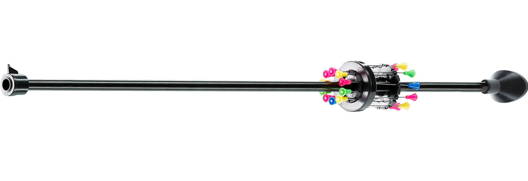 Ett kortare blåsrör med 10st pilar och pilkoger.