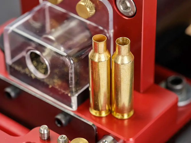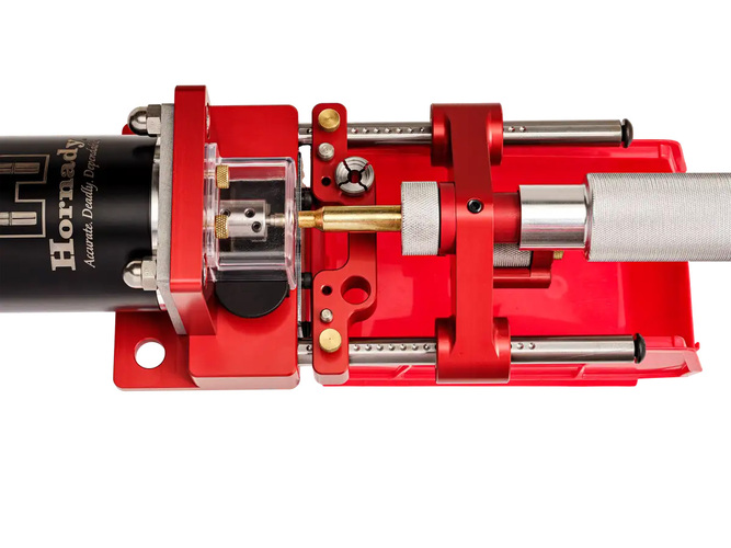 Hornady® High Speed 3-i-1 Power Case Trimmer kombinerar tre hylsförberedande steg i ett platsbesparande verktyg. Den kraftfulla motorn snurrar med över 2000 RPM, vilket gör att användarna kan trimma, fasa och grada av i ett snabbt steg. Trimmern har en klickjusterbar mikrometer för exakt och konsekvent trimning. Kompatibel med hylsor från kaliber .20 upp till .338 och längder från 1.450" till 3.5".