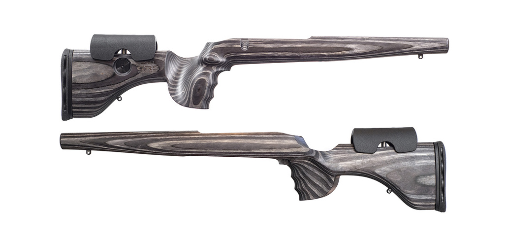Alla GRS kolvar har ett relativt rakt grepp med en ergonomiska design som GRS gjort sig känd för. En viktig detalj är att man vinklat greppet 6° utåt från pipans centrumlinje. Detta motsvarar handens vinkel när du pekar med pekfingret, vilket ger en mer neutral och avslappnad skjutställning som passar både jakt och skytte.