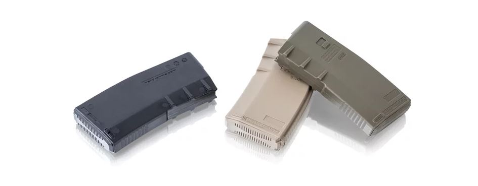 20 round magazine for use in semi-automatic firearms of the AR15 / M4 series. Our impact-modified polymer magazines have, among other things, a stabilized feeder and a mechanical stop so that they cannot be inserted too far when the lock is open. Available in black, sand and green.