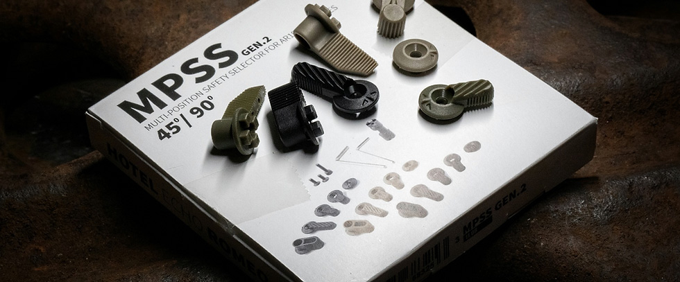 Kombinerad 45/90° säkring för AR15-system. MPSS levereras inklusive 5 olika säkringsspakar och 3 kåpor i 3 färger (Svart, sand och grön), som kan kombineras med varandra efter behov. Det finns 25 möjliga kombinationer per färg. Valet mellan 45° och 90° görs vid montering av bulten och möjliggör därmed en individuell anpassning till skyttens behov.