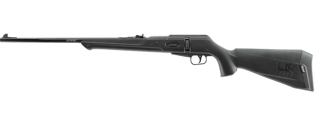 CO₂- drivningen består av två 12 g CO₂-patroner placerade i kolven tillsammans med punkteringsverktyget, vilket ger en konstant energi på < 7,5 joule. Ett 10 skotts roterande magasin för 4,5 mm diaboler, kombinerat med den räfflade pipan garanterar hög precision. Double-Action Only-avtryckaren möjliggör snabb eldgivning, eftersom det inte finns något behov av att manuellt spänna geväret mellan skotten. UX Canex förblir behagligt lätt, med en vikt på endast 1740 g, tack vare sin slitstarka polymerkolv.