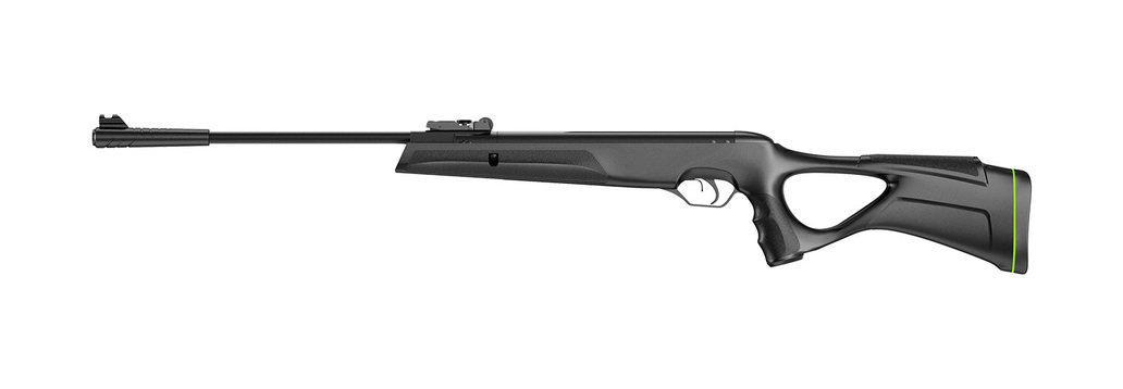 Skön design med tumhålskolv i komposit. Tillverkad i ett robust kompositmaterial med strukturerade greppytor. Geväret har maximal licensfri effekt med bra precision. Justerbart avtryck mellan 1,3 - 3,8 kg.