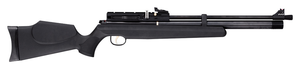 Avtrycket på geväret är riktigt bra med ren gång och möjligheter till inställningar. Bakkappan är gjort i gummi och kan ställas i höjdled. AT44 pumpas upp i 200bar och en koppling för montering på pump medföljer. Lufttuben rymmer 180cc (230cc på Long Edition) och kan skruvas ur och i, när som helst. Vapnen är försedda med en universalskena som kan utrustas med de fl esta typer av kikarsiktesfästen, både 9-11mm och de av weavertyp. AT44 fi nns i många olika utföranden. Välj mellan syntetstockar, med eller utan tumhål (TH) eller i valnöt (W). Alla stockar är ambidextriösa och passar både vänster och högerskyttar. Samtliga varianter fi nns i kaliber 4,5, 5,5 och 6,35mm. AT44 i kaliber 4,5 och 5,5 går även att få med 10skotts magasin. Kaliber 6,35 erbjuds med magasin som rymmer 9 skott. Samtliga vapen levereras licensfria dvs. maximalt 10J anslagsenergi. I licenspliktigt utförande för sportskytte eller jakt kan AT44 leverera mellan ca 30-50Joule.