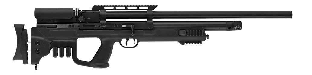Luftvapenet har en urskruvbar tub i aluminium med manometer och inbyggt dammskydd. Som tillbehör finns en lufttub med inbyggd regulator för jämnare och effektivare luftflöde i geväret.