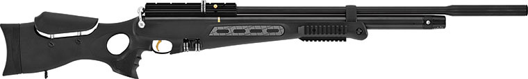 Luftvapenet har en urskruvbar tub i aluminium med manometer och inbyggt dammskydd. Som tillbehör finns en lufttub med inbyggd regulator för jämnare och effektivare luftflöde i geväret.