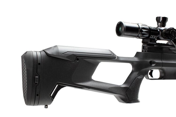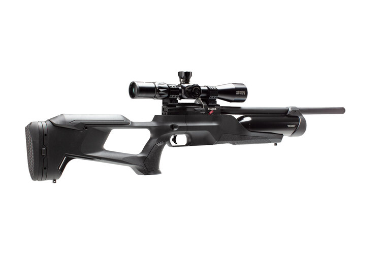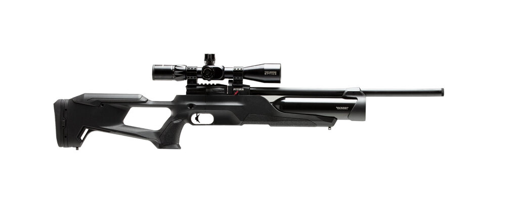 Upptäck fina skjutegenskaper i ett kraftfullt men licensfritt PCP-gevär från Reximex! Accura är en välbalanserad modell med justerbar tumhålskolv. Tuben är extra stor och räcker till många skott innan man måste fylla på med luft.