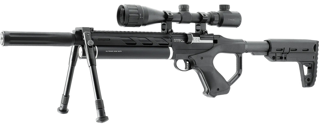 Notos har konstant energi och exceptionell precision. Receivern är tillverkad i höghållfast aluminium och uppfyller alla krav tack vare sin räfflade 300 mm pipa och den integrerade tryckbehållaren med ett maximalt fyllningstryck på 250 bar. Utrustad med integrerad ljuddämpare som säkerställer särskilt tyst skytte.