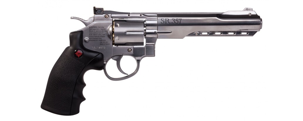 "Crosman 6"" revolver andas kvalite lika originalen. 6skotts magasin för stålrundkulor. Revolver har en totallängd om 298mm. Den verklighetstrogna vikt på hela 907g och en trevlig utgångshastighet 122m/s gör detta vapnet till det självklara valet för många skyttar."