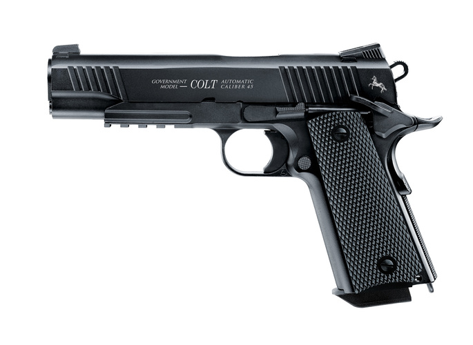 M45-typical features such as the palm safety, the distinct beavertail and the Picatinny rail are fully functional and complete the image of the classic. True to the original, the M45 shoots the SteelBBs in 4.5 mm caliber via a single action trigger.