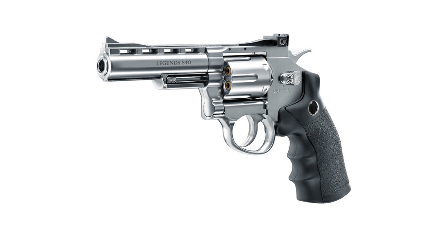 "Revolvrarna i S-serien är mycket realistiska och är till huvudsak tillverkade i metall. Trumman laddas med sex mässingpatroner som var och en innehåller en diabol i kaliber 4,5 mm. Under diabolens färd genom pipan början den rotera vilket ger diabolen ökad stabilitet och precision. En annan stor fördel med diaboler jämfört med stålrundkulor är de inte studsar tillbaka lika lätt om man träffar något hårt. S40 är mellanversionen med 4"" lång pipa"