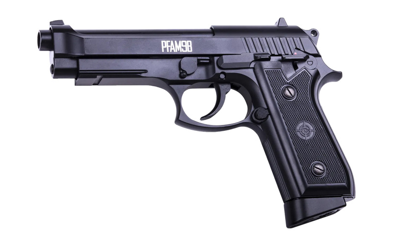 Driven av en 12-grams CO₂-patron, skjuter PFAM9B 4,5 mm stålrundkulor med hastigheter upp till 122 meter per sekund. Dess konstruktion helt i metall ger en solid, realistisk vikt, medan blowback-funktionen ger taktil återkoppling som förstärker skytteupplevelsen. Det löstagbara 20-skottsmagasinet rymmer CO₂-patronen och kulorna, vilket gör omladdningar och patronbyten snabba och enkla.
