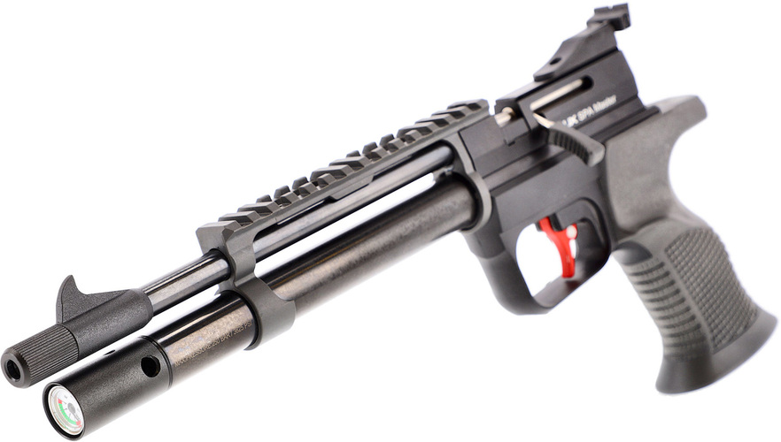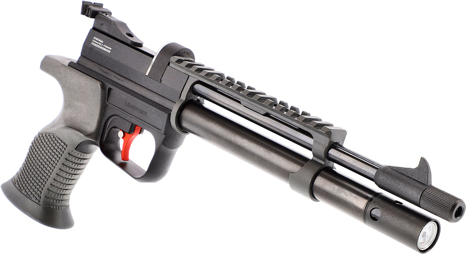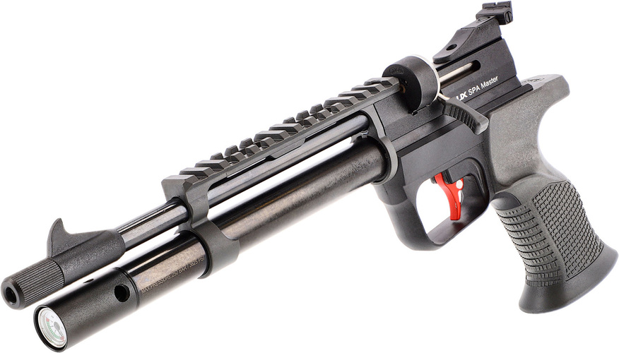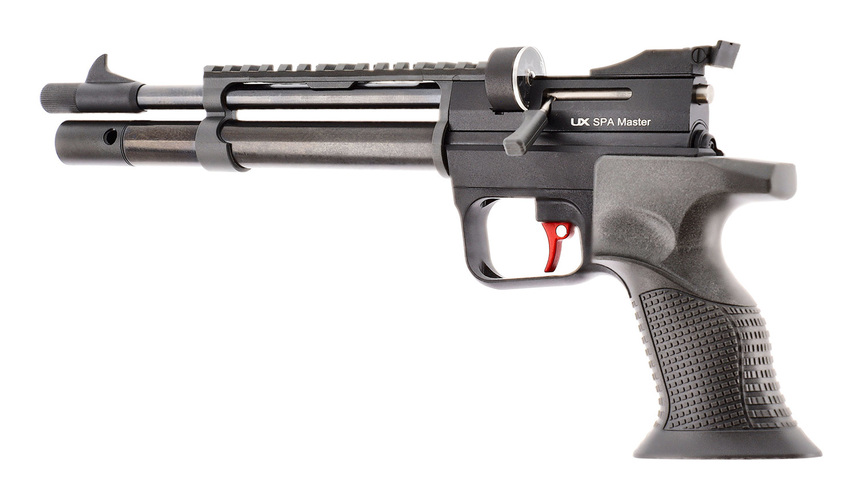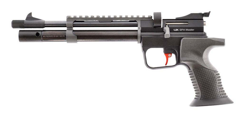 Den sportigt designade PCP-pistolen UX SPA Master imponerar på skyttar med sin höga potential för krävande fritidsskytte. Den integrerade 60 cc tanken med tryckmätare kan fyllas till 250 bar. Single-action repetermekanism, utrustad med en räfflad pipa och ett trummagasin för diaboler (kal. 4,5 mm / .177), och det ergonomiskt formade greppet passar både vänster- och högerhänta skyttar.