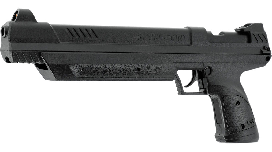 Lättskjuten luftpistol med räfflad pipa och pump-omladdning. Ett bra val om man vill ha en pistol som inte kräver kolsyrepatroner. UX Stike Point drivs av komprimerad luft och är helt rekylfri. Man kan avfyra ett skott mellan varje omladdning.