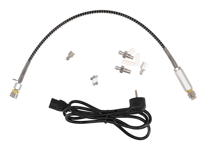 Ett överhettningsskydd säkerställer också att allt håller sig inom det idealiska temperaturområdet även under varma dagar. Tryckluftslangen är utrustad med en Foster-koppling, och alla standard PCP-tankar kan fyllas med upp till 300 bar tack vare de medföljande adaptrarna i 1/8″, M10 och M10x1. En tankstorlek på upp till 1 liter kan fyllas i en fyllningsprocess.