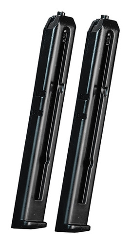 Prisvärda magasin som passar till flera pistolmodeller. Magasinen laddas snabbt genom att man häller kulorna i det hål som öppnas när man dra tillbaka matningsfjädern. Levereras i 2-pack. Ett tillbehör som rekommenderas!