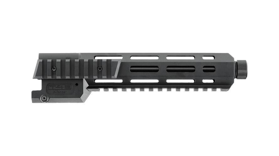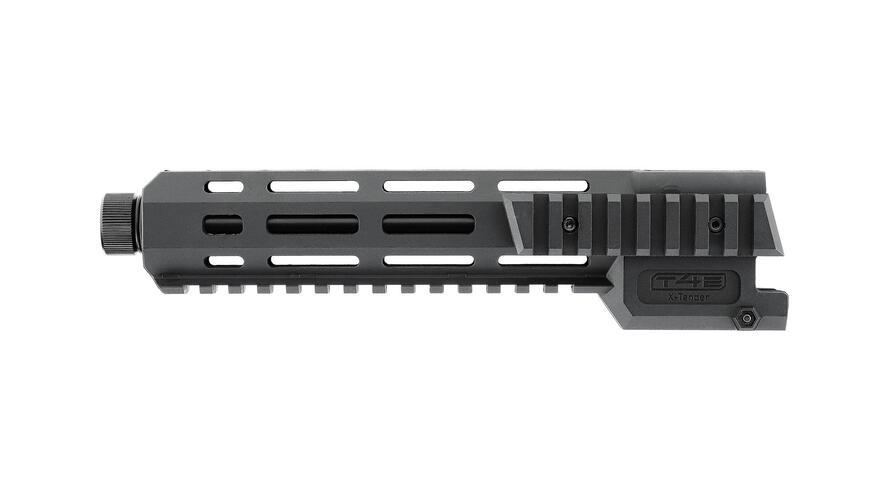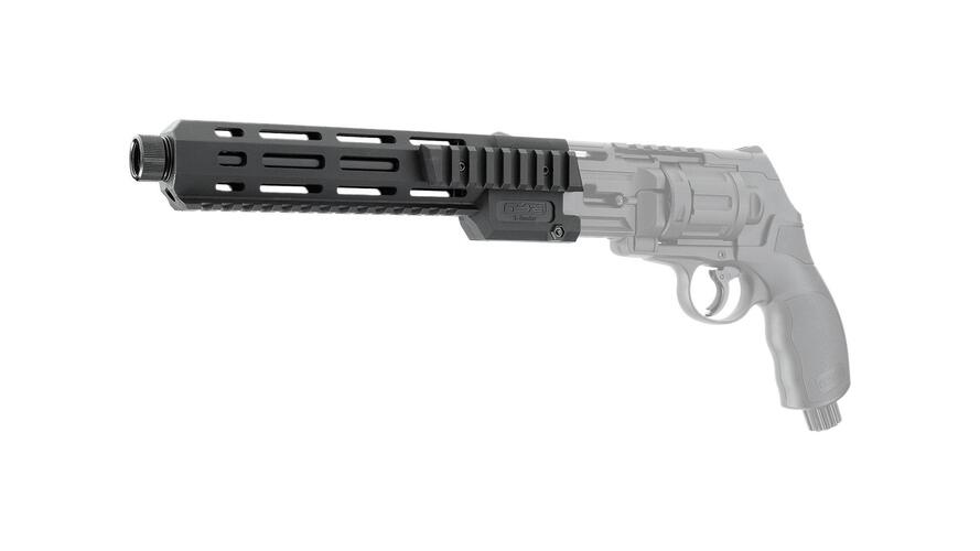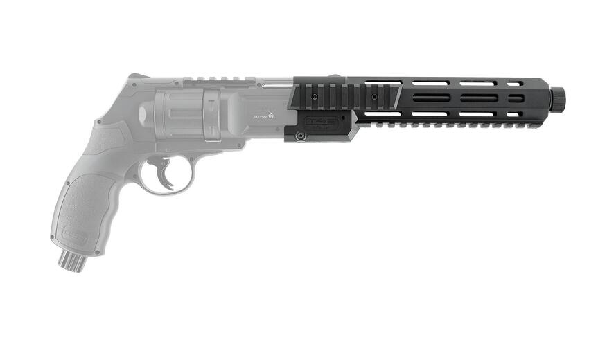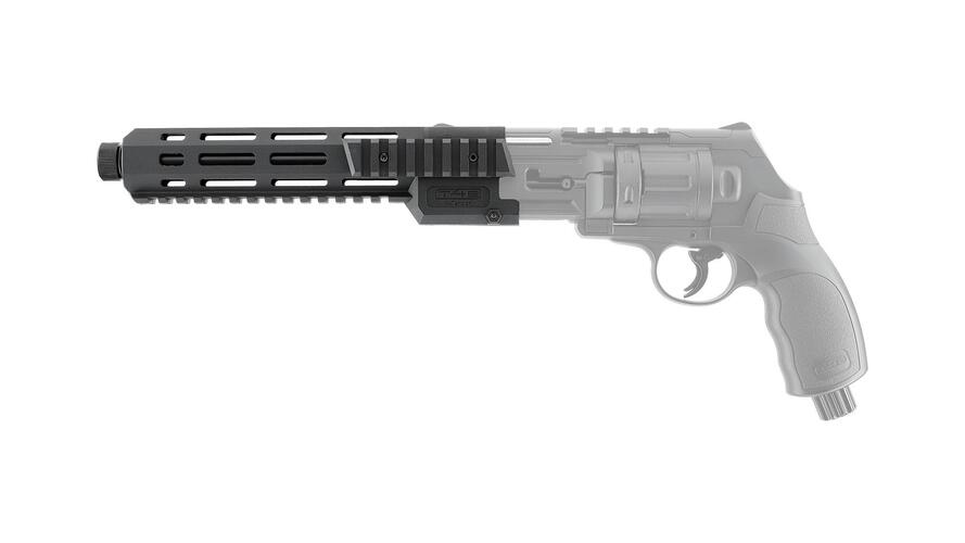 Imponerande pipförlängare för T4E HDR 50. Med denna monterad får du tre extra picatinny skenor samt M-LOK. Fronten är gängad med M17 för montage av X-Tracer (2.4050)