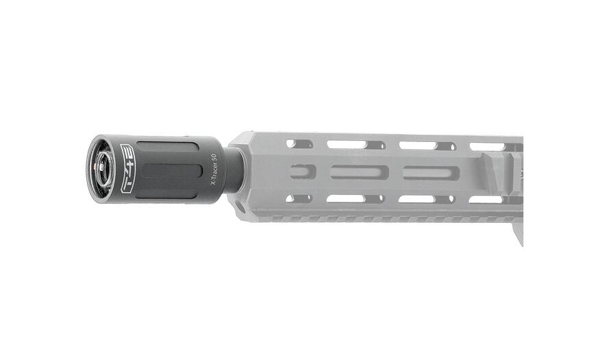 X-Tracer monteras på X-Tender (2.4757.3). Enheten aktiverar tracerballkulorna till spårljus, kulbanan kan då kontrolleras och justeras vid behov. Tre extra ljusdioder simulerar en imponerande blixt vid avfyrning. De två lägena kan väljas individuellt eller i kombination. Batteriet är integrerat i höljet och laddas via USB-C.