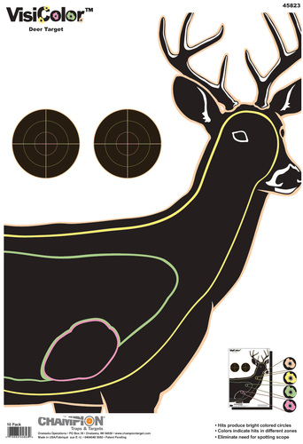 VisiColor™ high-visibility targets offer shooters an interactive, fun way to sight in and practice. Based on Champion’s proven VisiShot® technology, VisiColor provides multi-colored impact halos for easy identification of specific hit locations. The 5” Double-Bullseye and a Sight-In option give shooters even more down-range variety.