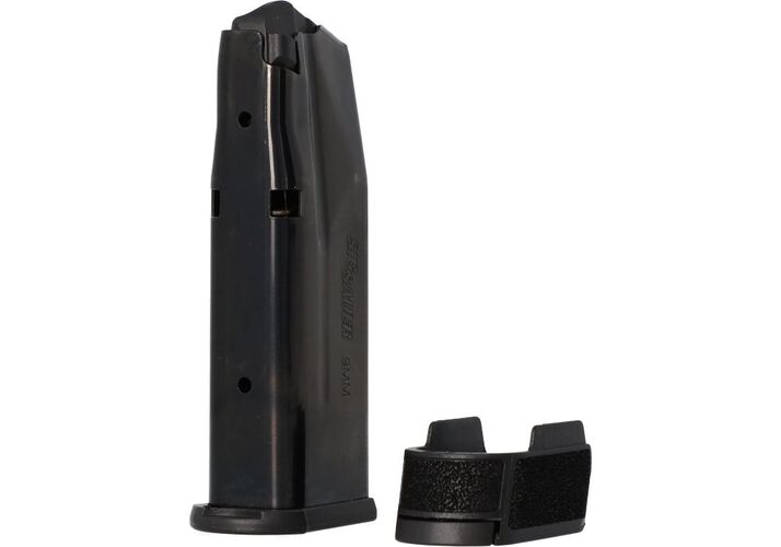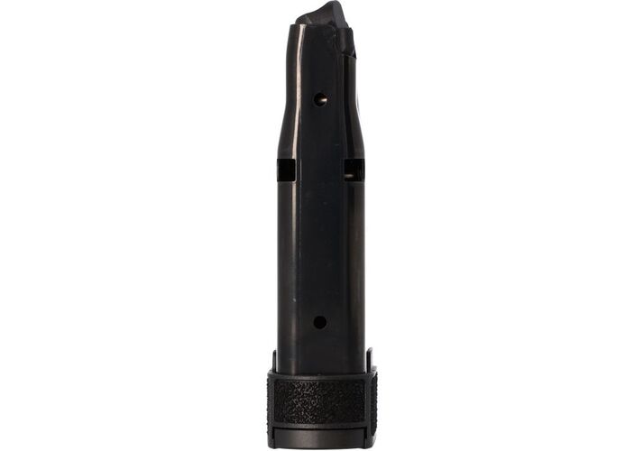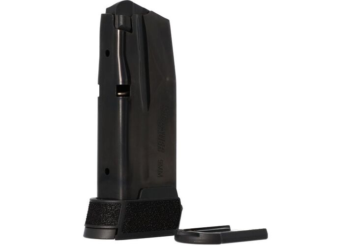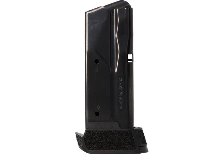 Extended 12-round steel magazine for the P365, P365X, and P365-XL micro-compact pistols. It fits flush in the P365X, P365-XL, and extended in the P365.
