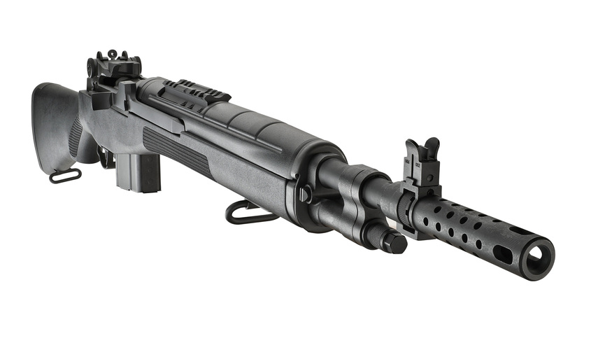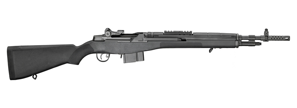 The Springfield Armory® Standard Issue M1A™ is a timelessly effective design, but sometimes circumstances call for something just a little bit shorter. The M1A Scout Squad rifle is 100% M1A, but with the 6-groove 1:11" twist carbon steel barrel trimmed back to 18". Featuring military aperture sights with 1-MOA adjustments and a rugged black composite stock, this compact rifle runs great on the hunt, from a vehicle, or around the farm.