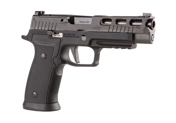 The P320AXG PRO is the first full-sized pistol in the all-metal AXG family of P320 pistols. The signature look of the Pro-Cut Nitron slide matches seamlessly with the black anodized metal AXG Grip module. The modern features and modularity of the P320 platform combined with the performance and feel of a metal frame offers a truly special shooting experience.