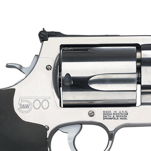 - Massive .500 S&W Magnum cartridge 2600 ft/lb. muzzle energy