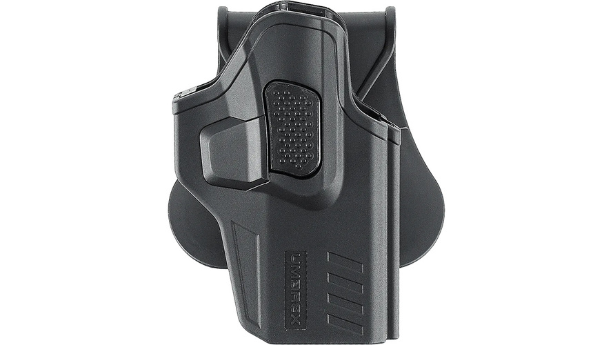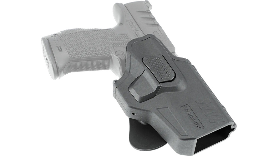 Umarex paddelholster är tillverkat av stöt- och slagtålig polymer och håller säkert alla Walther PDP-modeller tack vare en finjusteringsskruv. Vapnet frigörs med en fjäderbelastad frigöringsknapp. För en utmärkt passform och individuell positionering kan dragningsvinkeln justeras 360° och paddeln är gummerad på insidan. Den speciella designen av hölstret gör det också möjligt att hölstra en PDP med ett monterat rödpunktssikte.