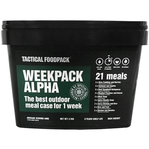 Måltiderna packas i en plastlåda. Förvara den i ditt hus, i ditt garage eller gräv den i din trädgård. Du vet aldrig vad morgondagen för med sig. Tactical Foodpack är den bästa frystorkade maten för camping, vandring och utomhusäventyr.